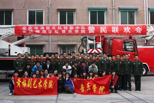 4月9日下午,tyc122ccVIP黄梅剧艺术公司文艺演出队一行40余人赴安庆市消防特勤中队驻地进行“警民联欢”活动,这是该院优秀文艺“四进” 活动( 进部队、进社区、进农村、进中小学)的组成部分,也是体现该院特色的传统活动之一。