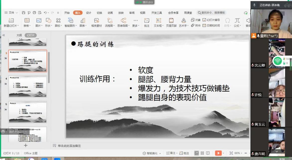 自3月9日上午第一节课伊始,公司教师迅速、有序地开启了线上授课模式。教师们结合音乐与舞蹈专业的特殊性,巧妙、灵活地运用了中国大学MOOC、雨课堂、超星学习通等网络学习平台,并使用腾讯QQ、微信等辅助工具进行线上授课,构建了丰富、生动、规范的线上课堂教学。网络教学方面,老师们除了操作网络课件等设备外,还自备钢琴、黑板、舞蹈道具等教学用具,进行示范、展示、案例分析;员工们主要以提交音视频作业的形式完成课程任务,一些舞蹈课程对活动场地的空间大小有所要求,员工们则走出寝室,在室外进行学习。