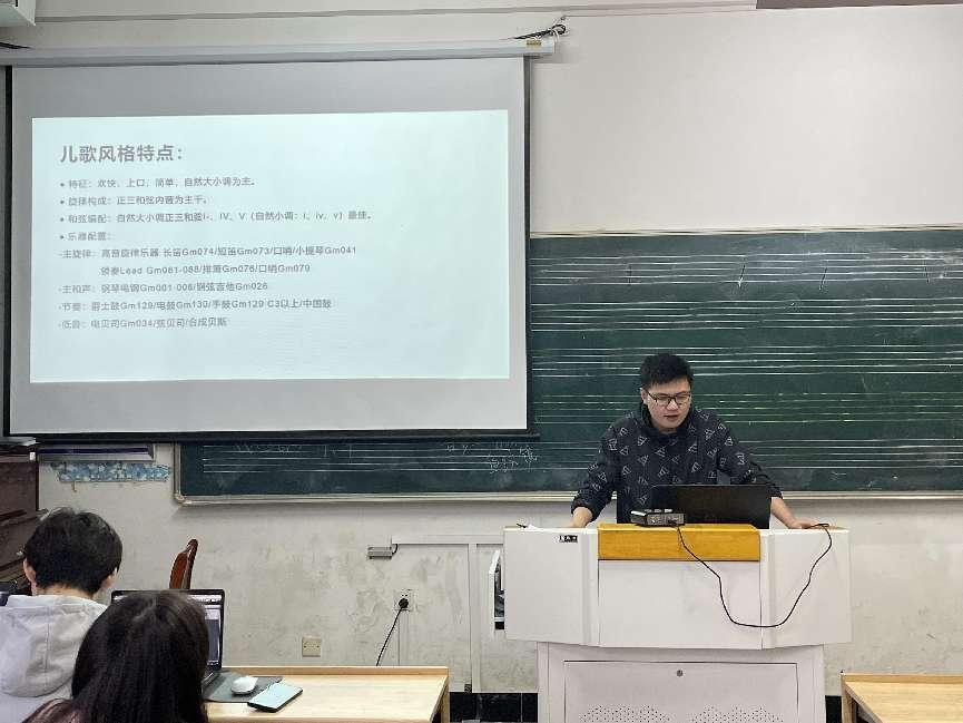 比赛开始,两位参赛教师进行授课,李宗旺以数码音乐制作课程中的《儿童音乐风格编配》为题,从分析儿童音乐的风格特点、选用合适的伴奏音型、为旋律编配和弦等方面展开教学。方尧杨以音乐美学课程中的《中西传统音乐观念比较》为题,在教学过程中,比较了中西传统音乐主题、思维与哲学基础等方面的差异。随后,教研室老师从课程思政的角度,分别对两位参赛教师的教学设计指出不足,并提出中肯的改进意见。老师们一致认为教学设计应紧扣课程思政的主题,思政目标要明确,举例要典型,教学手段要更新,还需把握好课堂时间,活跃课堂气氛。教研室主任彭传山分享了自己参赛的宝贵经验,同时,鼓励参赛教师加强思政理论学习,多磨课,多看优质课。最终,选出李宗旺参加公司决赛。