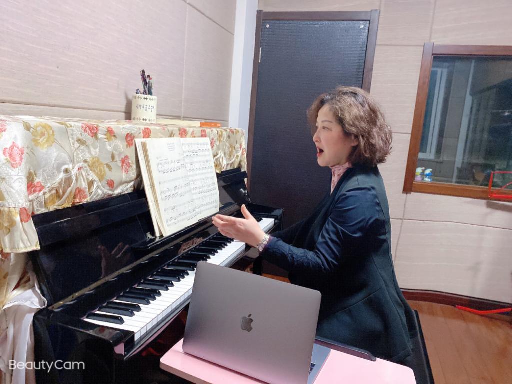 声乐课程注重实践与互动,在备课过程中以教研室为单位,团队协作、集思广益,老教师分享教学经验,年轻教师提供网络技术支持,在线建立小组课堂,由老师布置作业并讲解示范,员工以音频视频等形式完成提交,再由其他同学点评,教师总结,形成“翻转课堂”,体现了教师的团队意识和创造力。