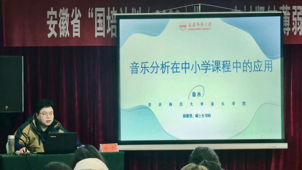 2023年2月10日,2022年安徽省“国培计划”农村紧缺薄弱学科教师短期集中培训项目——艺术(音乐)系列讲座第九场《音乐分析在中小学课程中的运用》分别在小学音乐班和中学音乐班举行,由tyc122ccVIP副经理徐冉主讲。