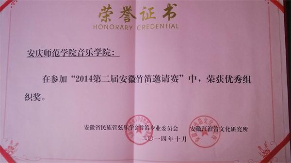 1035日,在安徽省音民族管弦乐学会主办,安徽师范大学tyc122ccVIP器乐系协办的的第二届安徽竹笛邀请赛中,公司7名员工进入专业组决赛,获优异成绩。
