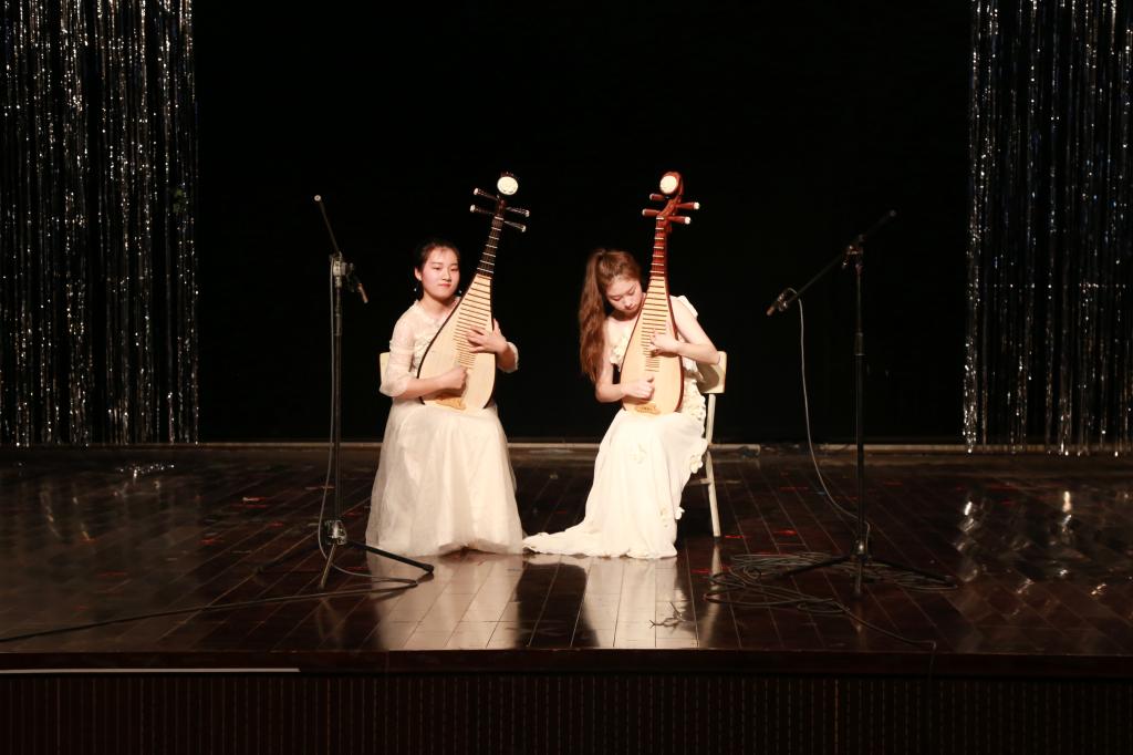 热情奔放的旋律以及强烈多变的舞蹈节奏,由孟晓和林萍演出的琵琶二重奏《送我一支玫瑰花》以5种不同的乐曲手法结合,演奏者变奏重复5次歌曲旋律,通过巧妙的构思和精心的编织,乐曲一气呵成、表现生动。“很喜欢这个演出。”音乐学专业2017(3)班的凌雯倩说,“曲子流畅而舒展,充分发挥了旋律抒情性的内涵;音调浑厚而深沉,体现出了一种发自内心的情感流露。”