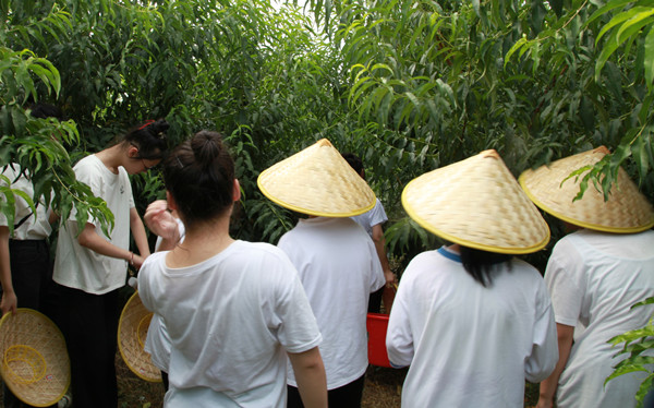 桃园现场,同学们戴着斗笠穿梭在一片绿色之中,或停下脚步采摘,或左顾右盼找寻,排排桃树间隙中不时传来欢声笑语。“这个黄桃好大”“绿色的桃还得多吸收点营养”“桃园阳光太足”……摘到黄桃后,员工们争相比较大小。不少员工表示,亲自摘下的黄桃比“现成的”吃起来更甜、更满足。