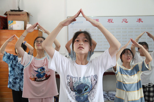 跟随“小老师”的手势与脚步,董明珠常常观看一两遍示范就能将动作复盘出来,每天休息前她都会在脑海中将动作再回顾一遍。在训练的过程中,“小老师”细心地分解动作,一遍遍地纠错,董明珠很快便成为她的“迷妹”。“我能感受到老师对舞蹈真挚的热爱,美好而纯粹,就像舞蹈是我生命中不可分割的一部分。”在课余,她还会将自己的心得和技巧与其他同学分享,帮助她们更好地掌握动作。