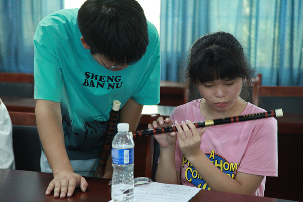 因为喜爱音乐,而平常难以接触到专业的艺术培训,钱雯雯此前自学过竖笛和乐理知识,那时只能依靠“自己琢磨”,并不够专业。“相比于竖笛,吹竹笛需要更绵长的气息,这是我目前所欠缺的。”按部就班地跟随“小老师”学习,她学会了如何吐气、纳气以延长气息。“老师的点拨让我茅塞顿开,为我解决了许多演奏难题。”在她看来,“小老师”给予的专业指导让她的成长开启了“二倍速”,耐心细致的教学使她心生暖意。