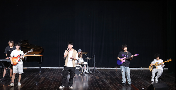 2023级计算机与技术专业刘远正用手机记录下动人旋律,“这位演唱者的声音很有感染力,录下来可以在压力大时缓解焦虑。”他表示,期末复习带来的紧绷神经,在这场晚会上得到了有效的“心灵按摩”。“风景线”乐队成员2024级音乐学专业饶俊杰介绍,“我们特意选择能带动全场互动的歌曲,希望用音乐传递更多欢乐。”该乐队经验丰富,曾登上怀宁县文化节及安庆空军基地元旦晚会的舞台。