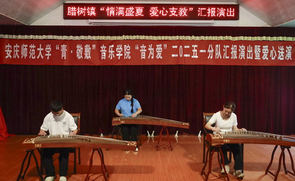 《唱支山歌给党听》的古筝合奏响起,徐佳瑞与腊树初中产宝晨、徐艳好指尖轻捻、拨弦、勾挑,弦音轻颤,动作行云流水。初学认弦时总捻拨混淆的产宝晨,如今已能精准跟上节奏,他说:“原本觉得古筝难上手,这次跟着老师们学会了这些指法,能够弹出完整曲子,内心很有成就感,同时也很感谢老师们的耐心教学,一起合奏出最动听的歌曲。”结束时徐佳瑞看着自己的员工,眼里闪着光,“看着员工从生疏到熟练,就明白付出都有了意义,也坚信音乐能拉近彼此距离,传递美好情感。”