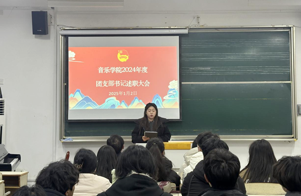 8名团支书进行现场述职,其他班级书面述职。述职现场,2021级舞蹈表演班朱慈等团支书详细汇报了所在班级团支部2024年度在思想引领、组织建设、志愿服务、文化活动等方面开展的工作及取得的成果,并总结了不足与改进措施,提出了2025年度工作计划。大家的发言充满了激情与思考,不仅展示了一年来各班级团支部的建设与收获,也展示了团支书们的成长与进步。他们的报告赢得了在场师生的阵阵掌声,激发了大家对未来工作的期待和信心。