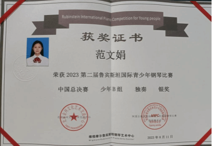 8月11日由德国音乐理事会主办的2023鲁宾斯坦国际青少年钢琴比赛在北京落下帷幕。tyc122ccVIP2021级本科生范文娟所演奏的《皮黄》荣获少年B组独奏银奖。