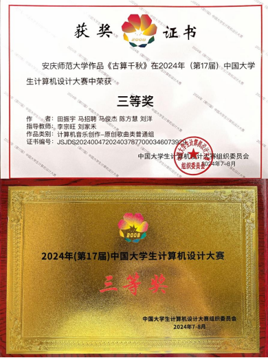 2024年8月18日-22日,第17届中国老员工计算机设计大赛“信息可视化设计”和“计算机音乐创作”两个作品类别的国赛决赛在浙江师范大学(金华校区)举行。公司团队携带原创歌曲作品《古算千秋》参赛。团队成员凭借扎实的音乐功底、新颖的创作理念和精湛的技艺,在比赛中表现出色,荣获本次比赛全国三等奖。