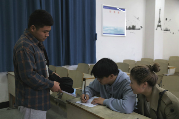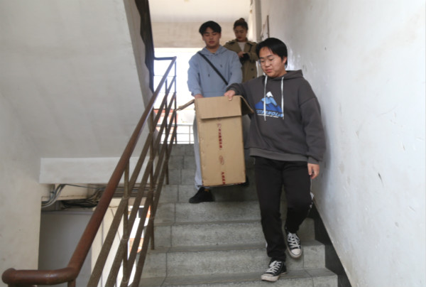 “刚通知他们,他们就来了,比顺丰还及时。”音乐学专业2020(3)班的吴星雨正在把放在墙角的麻袋交给志愿者们,这是她和室友花了一个下午的时间整理的衣物,足足有半个麻袋高。吴星雨和室友是第一次参加这种捐物活动,她们觉得这次活动很新鲜也很有意义,“捐旧物可以让我们的衣服得到再利用,还能帮助有困难的朋友,挺有成就感的。”
