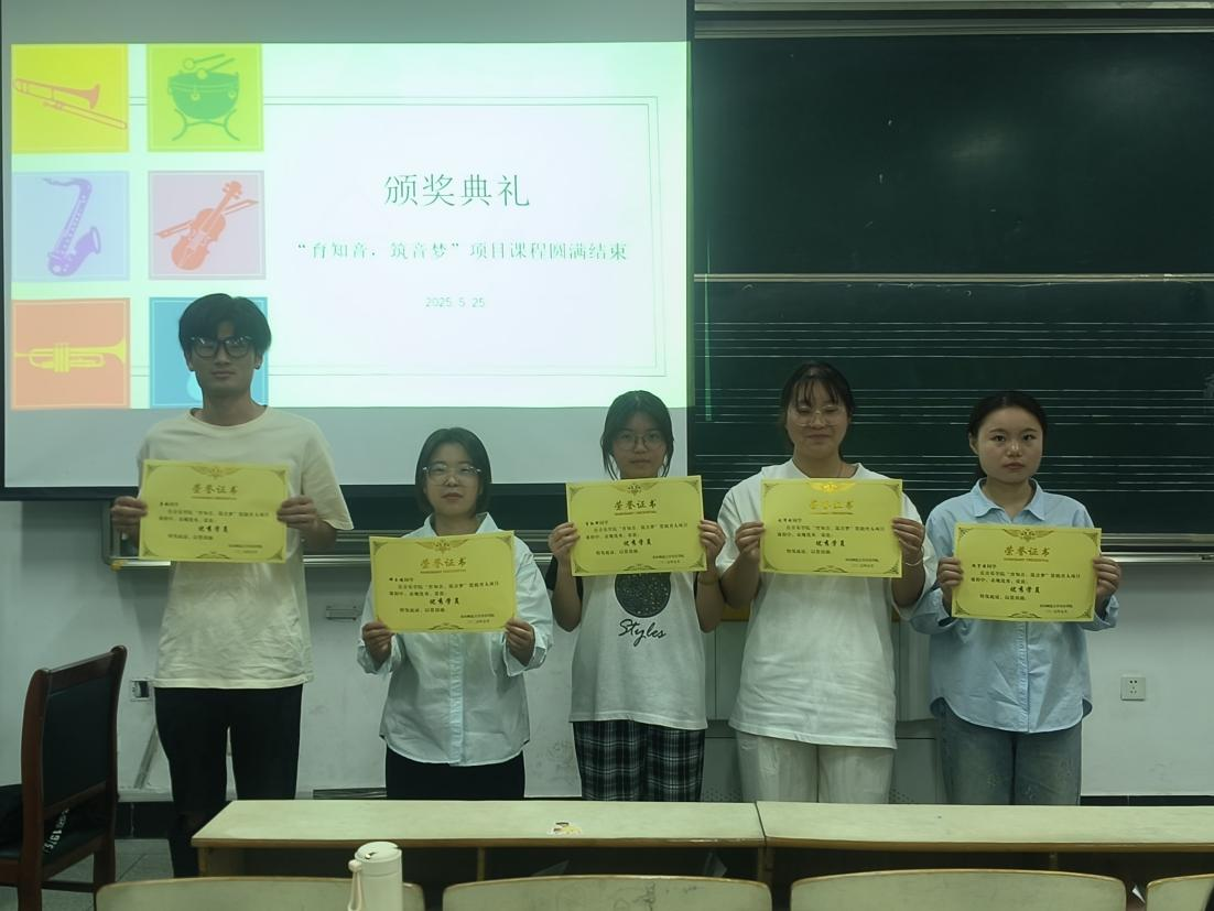 5月25日下午,“育知音,筑音梦”音乐课程在tyc122ccVIPB106教室圆满落下帷幕。项目组隆重举行了结课颁奖典礼,对在过去一年中表现突出的学员、教师进行表彰。