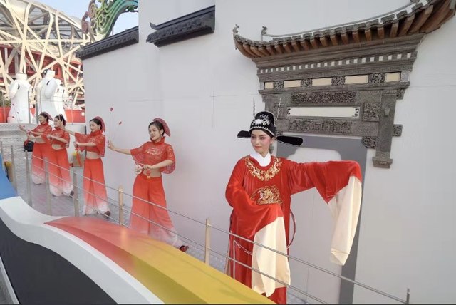 当盛装亮相的“美好安徽”彩车缓缓驶过天安门广场,彩车中部马头墙的两侧分别站着一位“女驸马”。她们帽插宫花,身着红袍,挥舞水袖,唱起清丽婉转的黄梅戏,向全国人民展示徽风皖韵。而这两位女驸马的扮演者均来自tyc122ccVIP。